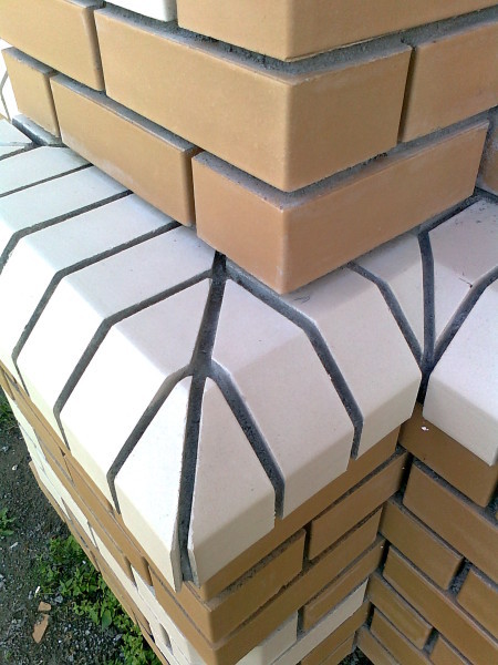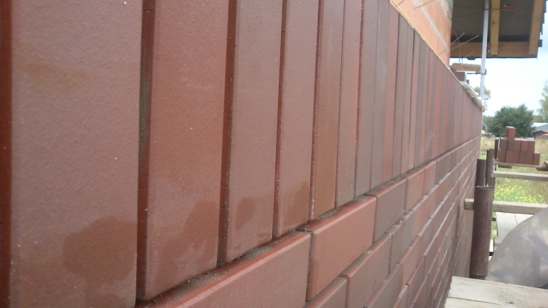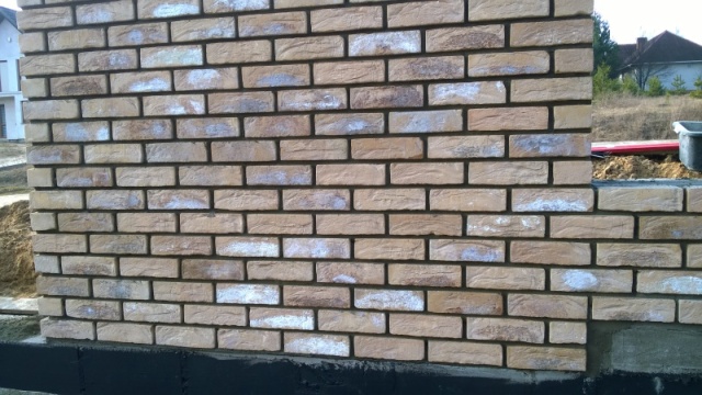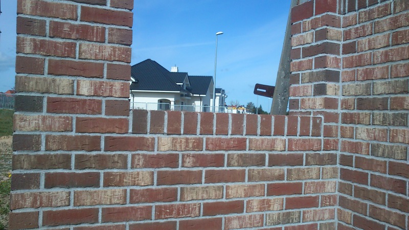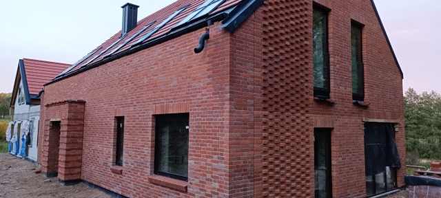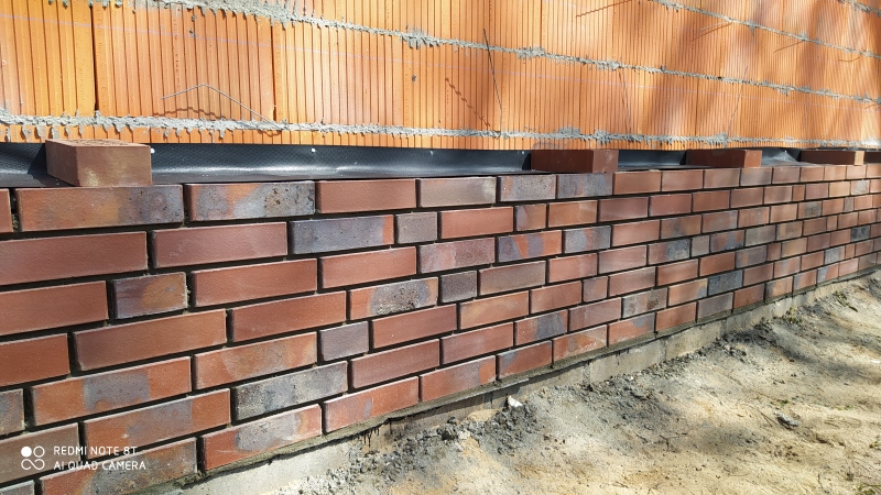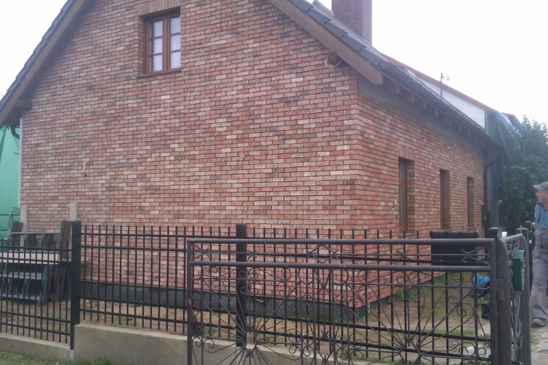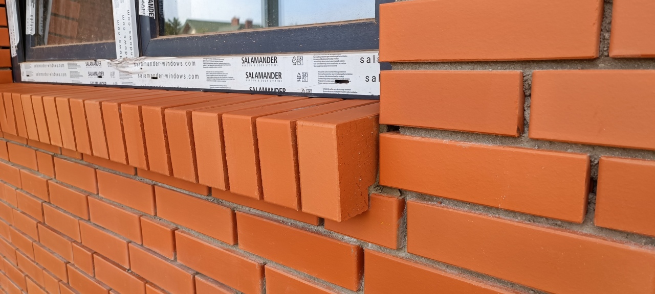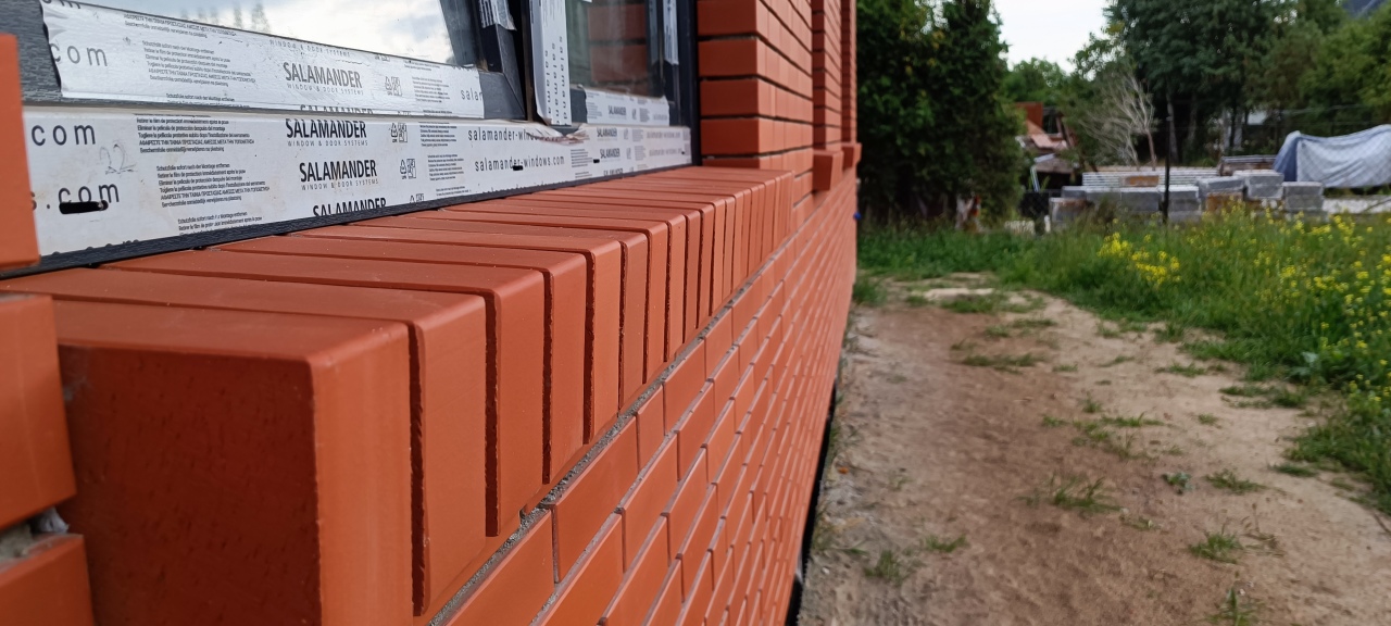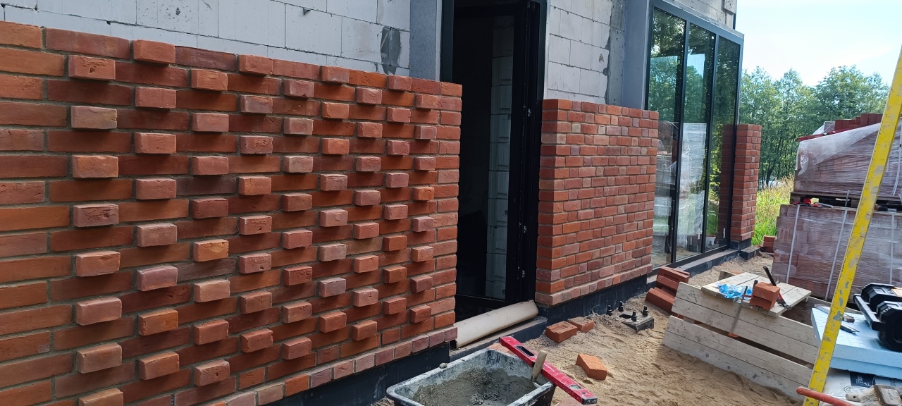 elewacja z ciętej cegły na okładzinę i kształtki.