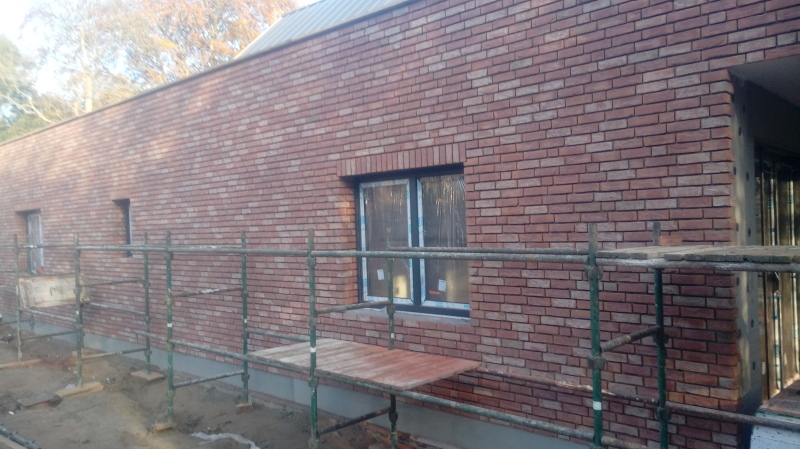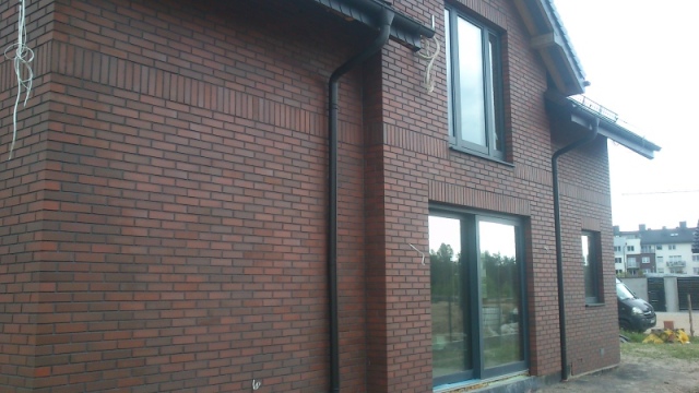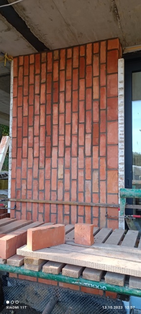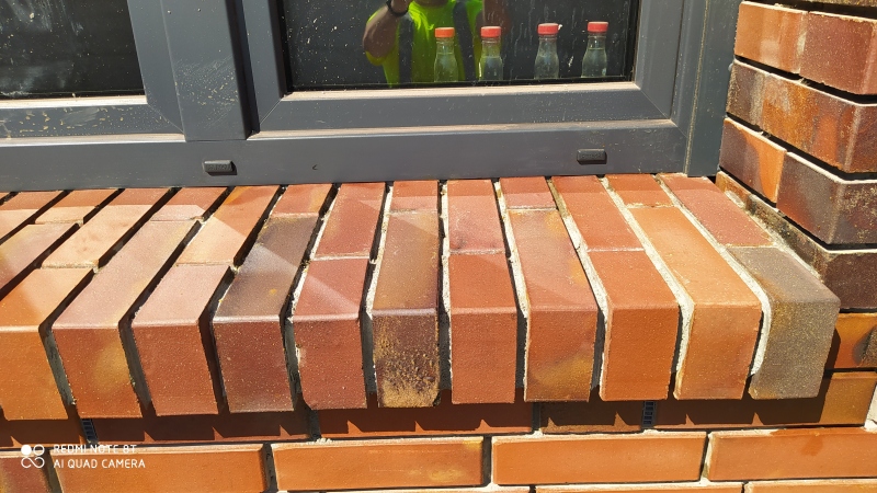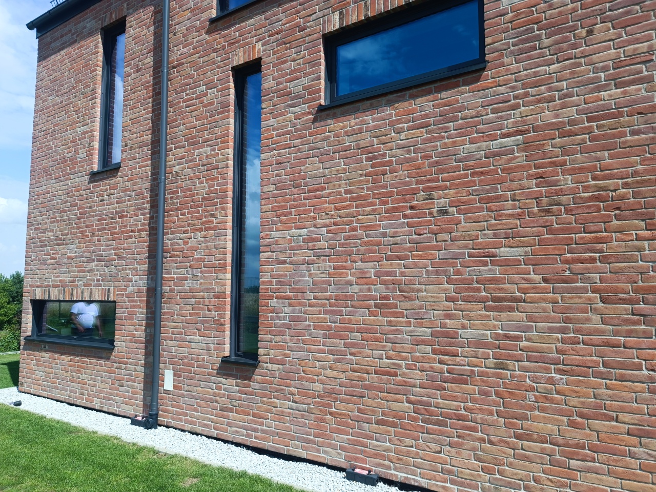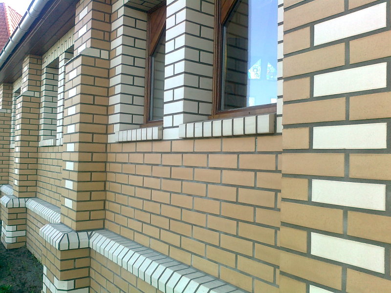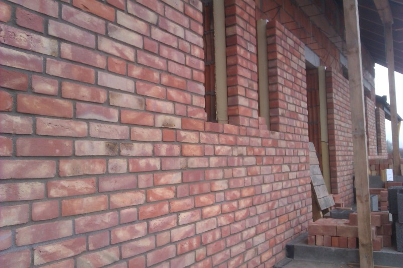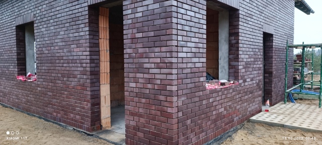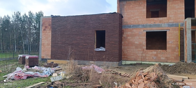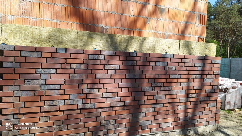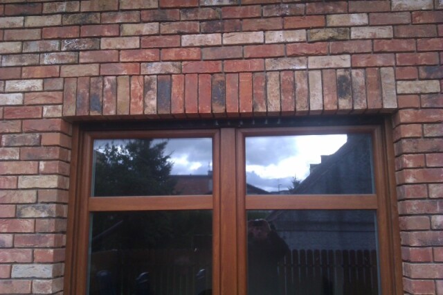 elewacja z ciętej cegły na okładzinę i kształtki.