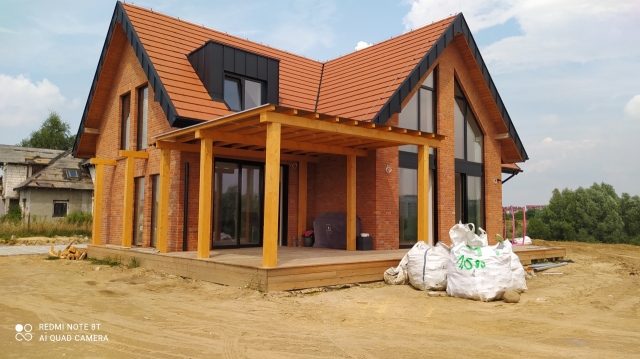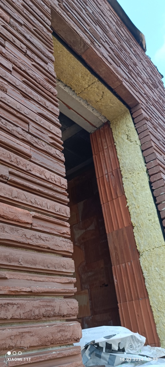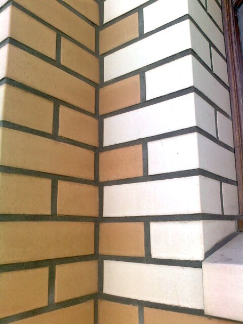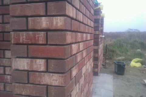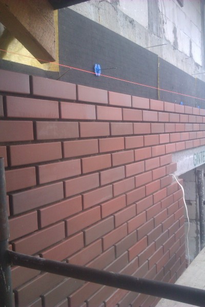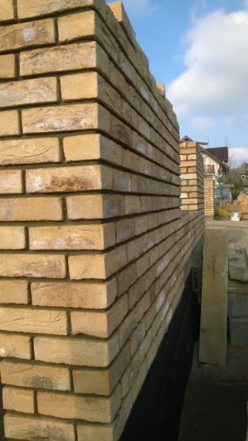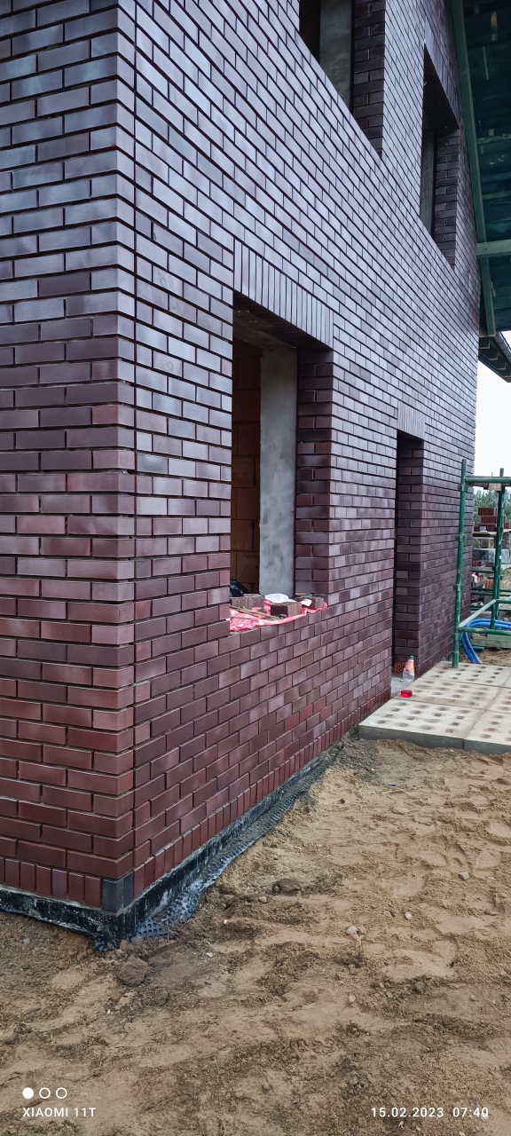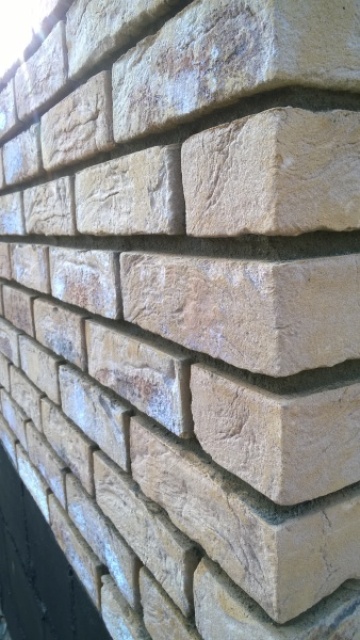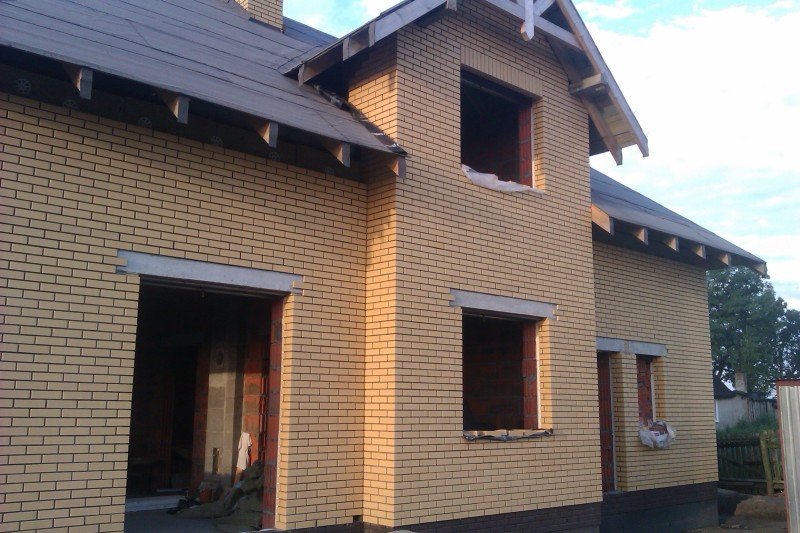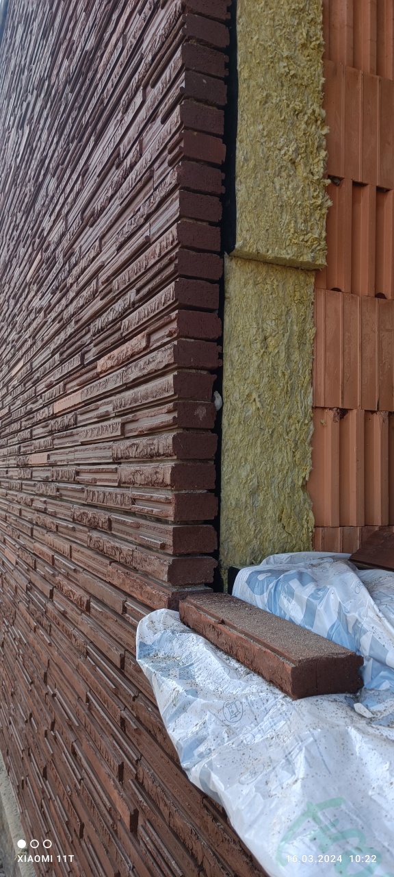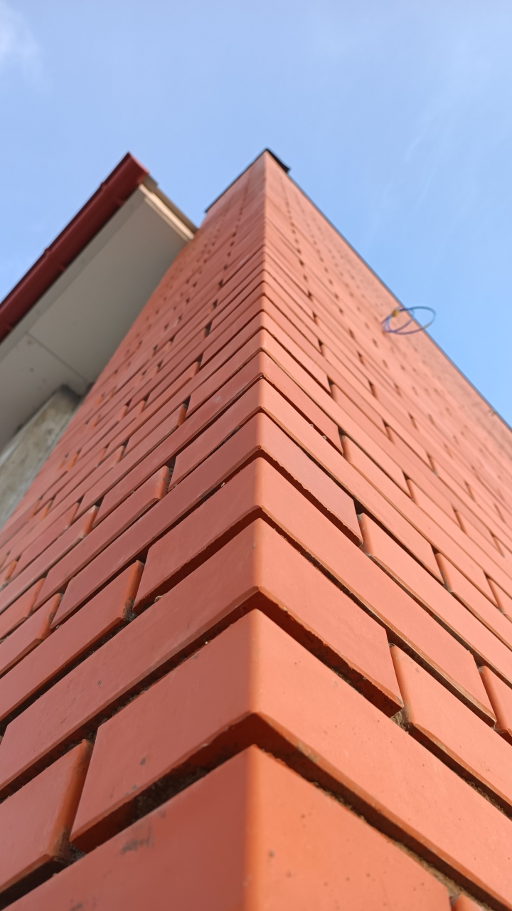 elewacja z ciętej cegły na okładzinę i kształtki.